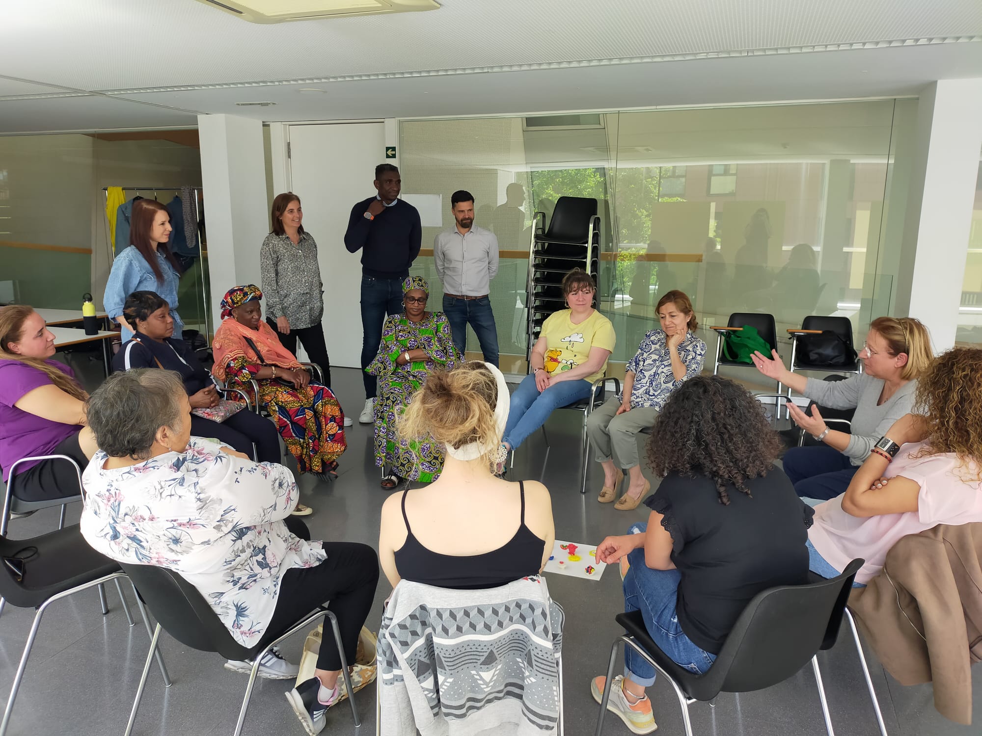 En aquest taller d'expressió artística amb una durada de 12 sessions, cada dimarts, fins al 18 de juny, es treballa l'oferiment de recursos per a l’apoderament de la dona i la gestió de les emocions en relació amb el procés migratori a través de disciplines artístiques com la dansa, la música, la pintura, entre d'altres, amb les quals es poden descobrir noves formes de comunicació com és l'expressió corporal no verbal.